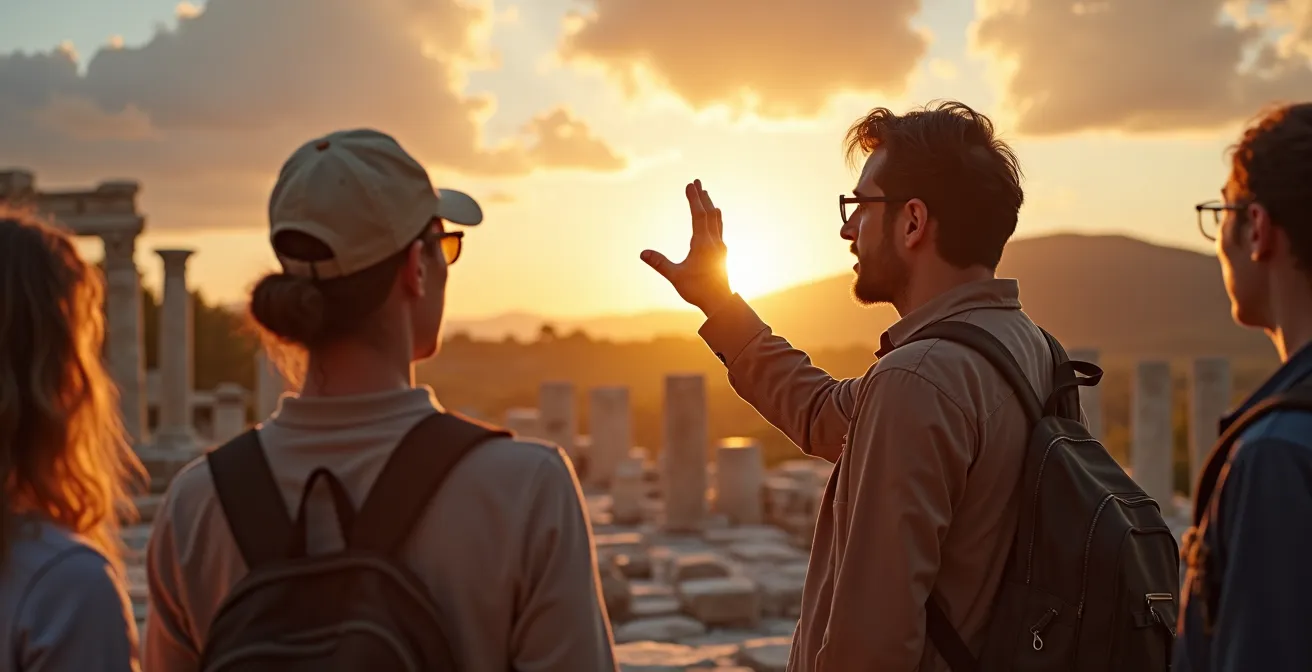 La connexion narrative entre sites dispersés représente peut-être la dimension la plus sophistiquée de l’expertise. Une visite classique enchaîne des lieux sans nécessairement construire de cohérence globale. Un conférencier structurant, au contraire, tisse un fil chronologique et thématique qui transforme des visites isolées en récit civilisationnel complet. De Mycènes à l’époque classique, puis hellénistique et romaine, chaque site devient une strate temporelle permettant de comprendre les évolutions politiques, artistiques et philosophiques de la Grèce antique.