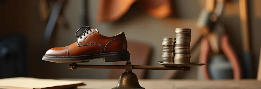 Le calcul devient pertinent en intégrant les coûts annexes. Un ressemelage professionnel coûte entre 80€ et 120€, opération possible 2 à 3 fois sur une construction Goodyear typique des fabrications françaises, contre 0 à 1 fois sur une construction collée. L’entretien régulier (cirage, imperméabilisant) représente environ 30€ par an pour maintenir les performances du cuir pleine fleur.