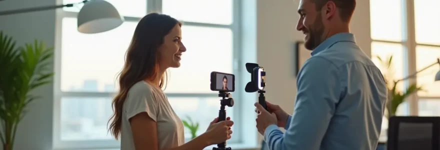 La première composante est le matériel minimal. Le triptyque suffisant combine un smartphone récent, un micro-cravate et un trépied stable. Cette configuration couvre 90% des besoins en vidéo d’entreprise. Le smartphone moderne offre une qualité d’image largement supérieure aux exigences du web, le micro-cravate élimine les bruits parasites pour un son professionnel, et le trépied garantit la stabilité qui différencie immédiatement un contenu amateur d’un rendu maîtrisé.